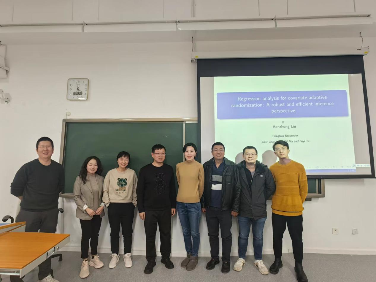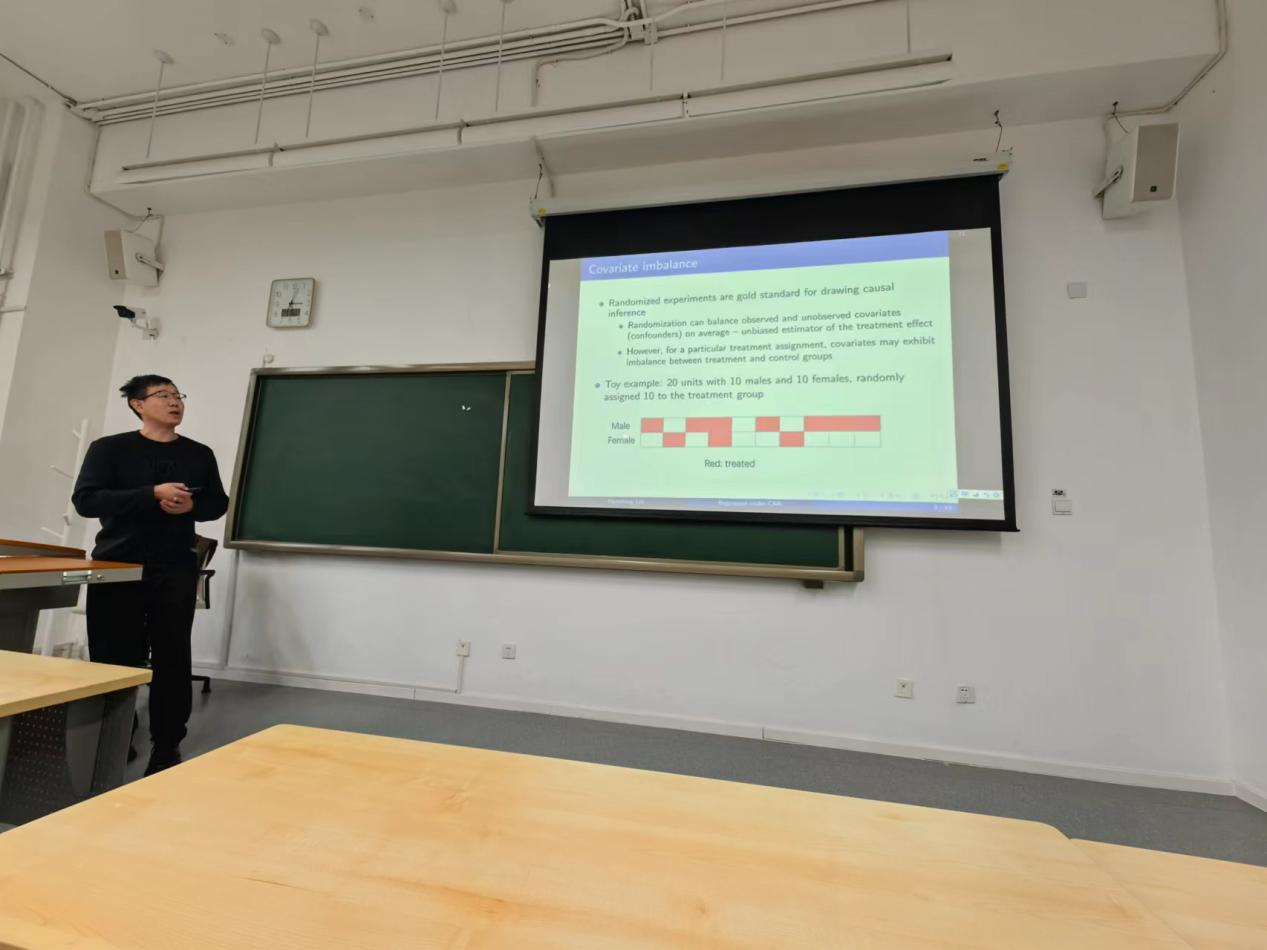 刘汉中副教授与青年创新团队就因果推断主题展开了热烈讨论,刘汉中副教授着重讨论了因果推断下各类分层数据的协变量调整效果。团队成员李丰、潘蕊以及马凌飞介绍了各自在统计学中的实用经验。团队与校外专家就本项目的理论框架、模型分析、决策研究等等问题进行了深入探讨。
