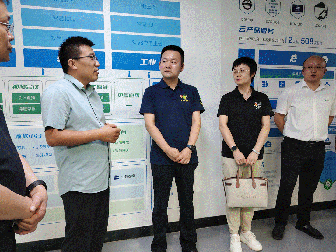 7月15日下午3时许,太阳成集团tyc539经理贾尚晖、太阳成集团tyc539党委副书记、纪委书记何童,太阳成集团tyc539研究生工作办公室主任苑欣彤以及5名太阳成集团tyc539研究生,在定陶区大数据建设工作主要负责人的陪同下,一同参观了位于山东省菏泽市定陶区的“鲁西南大数据中心”并展开调研。