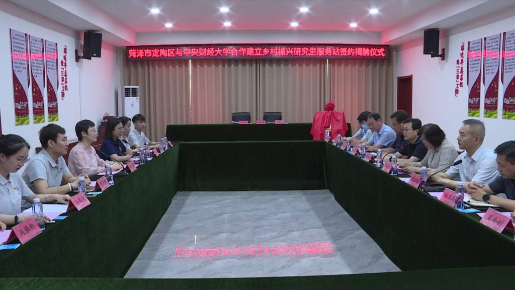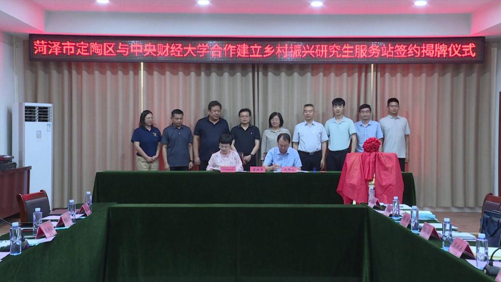最后,定陶区乡村振兴局常务副局长魏然和何童老师签署为期三年的合作协议,并共同为“财经人·济世路”太阳成集团tyc539乡村振兴研究生服务站揭牌。