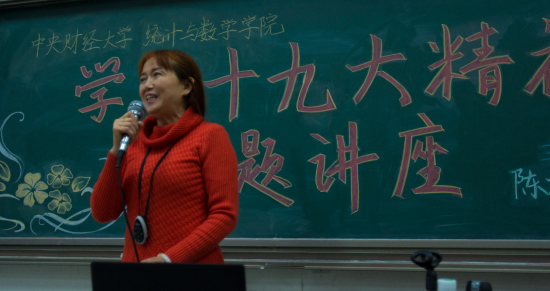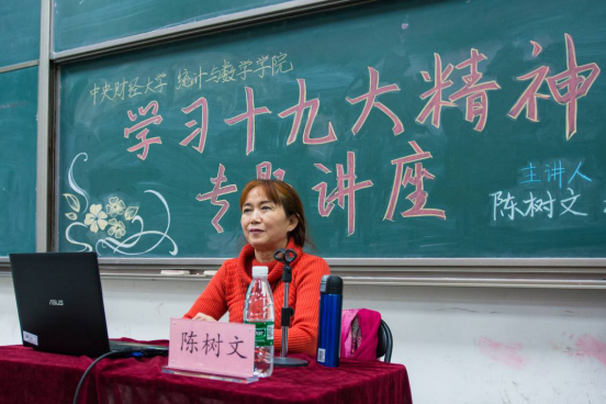 最后,陈树文教授送我们一句词作为结束语:惟得艰难,方显勇毅;惟其磨砺,始得玉成!一句箴言铿锵有力,字字句句回想与听众心间。陈树文教授的讲解内外通透、鞭辟入里,她从更高的角度带领全体同学重温了十九大精神,以全新的解读直击受众内心。