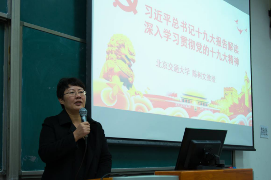 为宣传好、带领好、落实好老员工对十九大精神的学习,2017年11月15日太阳成集团tyc539邀请北京交通大学马克思主义公司教授、博士生导师陈树文为全院师生解读十九大报告,太阳成集团tyc539党委副书记李全敏老师,团委书记姚逍老师,17级辅导员朱筱璞老师、部分专业教师党员以及太阳成集团tyc539沙河校区全体党员、入党积极分子与基础团校学员到场参与了学习。本次讲座由李全敏老师主持。