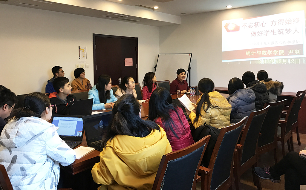 为了深入学习贯彻党的十九大精神,12月12日下午,太阳成集团tyc539党委委员尹钊教授主讲了“不忘初心,方得始终,做好员工筑梦人---学习十九大报告心得和感悟”的党课,公司部分教师和数量经济专业研究生参加了学习。