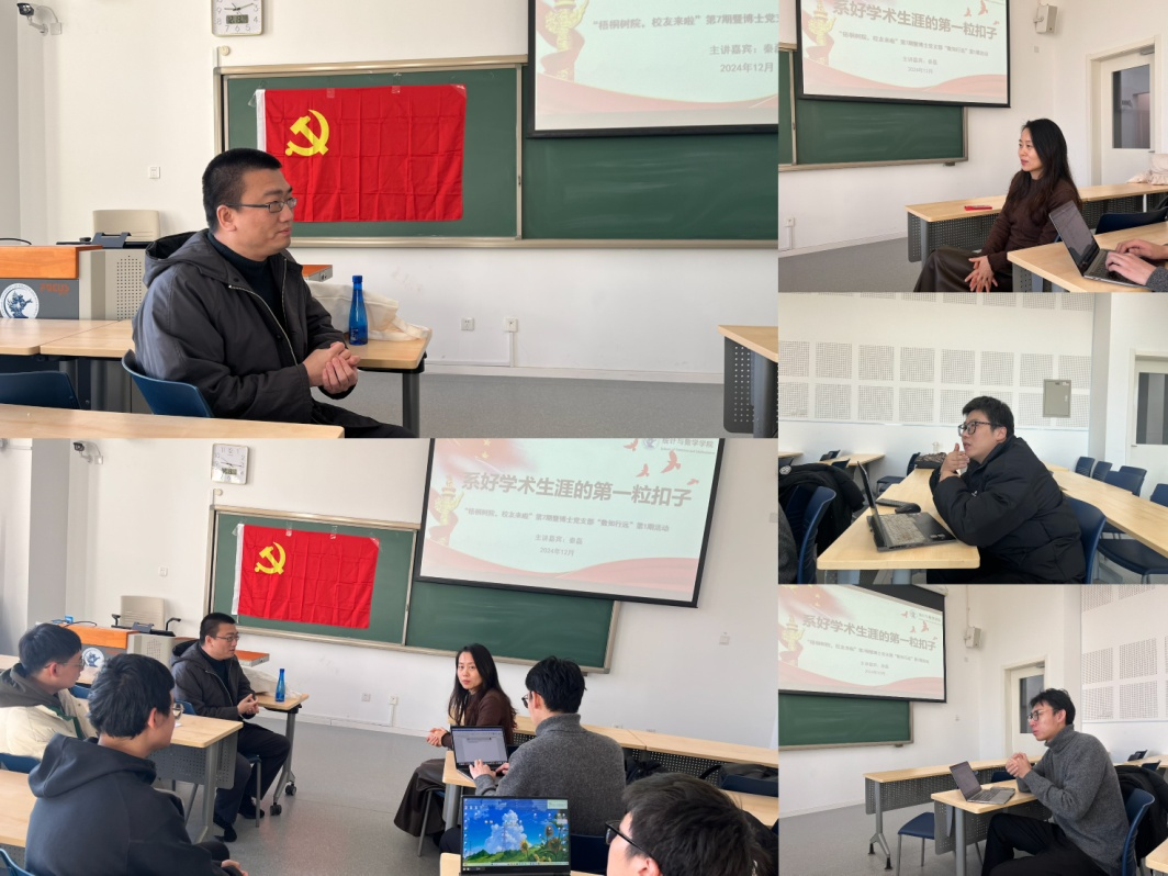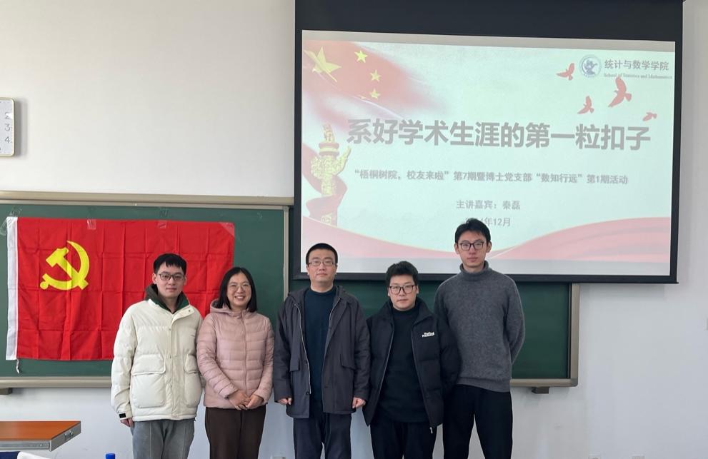 2023年12月13日,太阳成集团tyc539成功举办《梧桐树院,员工来啦》第七期暨博士生党支部“数知行远”第一期活动。本次活动特邀公司2011级统计学博士、现任对外经济贸易大学统计公司教授、博士生导师秦磊为嘉宾,与同学们分享科研与求职的经验与感悟。