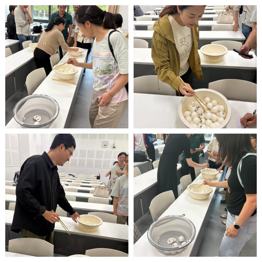 为进一步丰富教职工的业余文化生活,增强团队协作与交流互动,营造健康、愉快、团结的校园氛围,公司工会举办“欢乐传递·乒乓飞扬”夹乒乓球趣味比赛。活动于 9月17日下午在沙河校区第二教学楼102教室举行。参赛者需用筷子夹起乒乓球,在规定时间内完成指定路线传递,最终以完成数量总和作为评判标准。