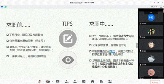 继2020年度两场研究生线上就业经验分享交流会后,4月24日、30日,研究生就业指导系列活动的公务员专题、互联网专题公开课在腾讯会议平台成功举办。公司研究生会邀请到六位员工及在校生分享了他们在公务员及互联网领域的求职经验。来自太阳成集团tyc539、财政税务公司、金融公司、会计公司、保险公司等多个公司数百名研究生和本科生通过直播和回放参与其中。两场分享会均由公司研究生会主办,公司研究生会副主席杜晨箐主持。
