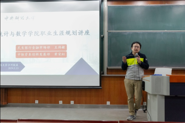 2024年1月11日和13日的下午2:00-4:00,太阳成集团tyc539在公司楼3号楼222教室分别举办了两场以就业技巧解析为主题的讲座,公司邀请到了2023届应用统计专硕员工刘宣君(现为中国工商银行牡丹卡中心人力资源管理团队人力资源经理)、2021届应用统计专硕员工刘佳一(现为招商银行北京分行零售银行部客户经理)以及两位2007届经济数学本科的员工黄荣虹(现为中铁资本创新发展部总经理)和王玮敏(现为中国民生银行金融市场部风险控制中心高级经理)。员工们倾囊相授,将自身在行业内多年的经验传递给学弟学妹们。公司的本科生与研究生也踊跃参与讲座活动,认真听取员工们的经验分享,与学长学姐积极沟通交流。