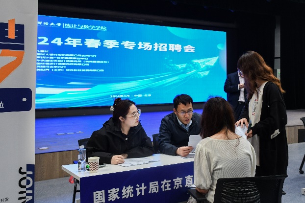 本次专场招聘会共特别邀请了7家单位,参会单位包括国家统计局在京直属事业单位、中国华信统计师事务所有限公司、中国光大银行股份有限公司北京分行、江苏银行北京分行、DTL量化、普华永道中天会计师事务所(特殊普通合伙)、完美世界(北京)软件科技发展有限公司。招聘岗位涵盖统计学类、数学类、金融类、经济类等相关专业,提供的岗位类型丰富多样。