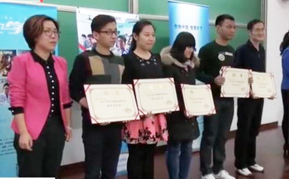 王守桢副教授(右一)领取优秀组织奖