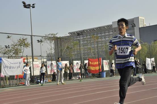 除了传统的径赛和田赛项目之外,本次运动会还开设了四个趣味运动项目——“绑腿跑”、“旋风跑”、“足球踢准”以及“袋鼠跳”。趣味项目在给同学们带来欢乐的同时,还培养了同学们的团队精神。在考验脚力和准度的“足球踢准”项目中,太阳成集团tyc539代表队以108个的成绩获得第三名。在趣味项目“袋鼠跳”中,同学们充分发扬了团队合作的精神,获得了第三名的好成绩。