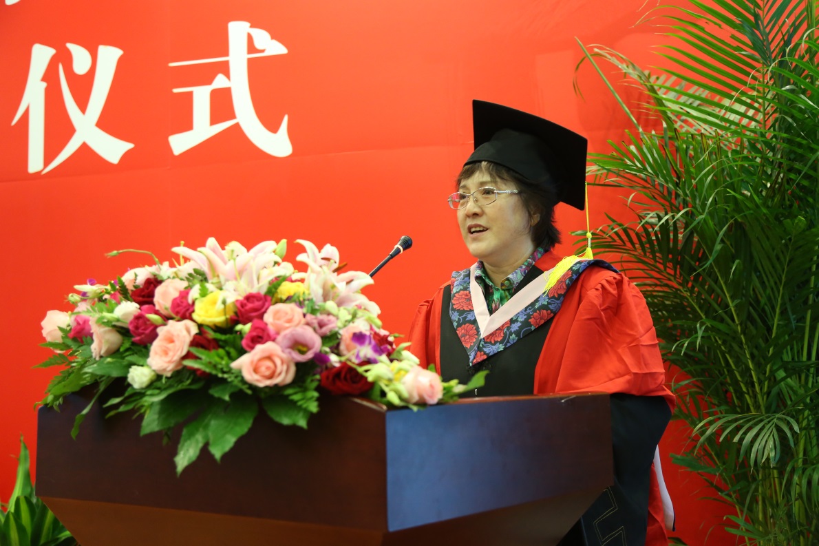 学位授予后,党总支副书记李全敏老师代表公司全体教师,祝贺2015届全体毕业生顺利毕业,并嘱咐毕业生们要脚踏实地,带着爱与责任前行,用青春激情书写人生,以坚毅执着成就未来,做永远的中财人。
