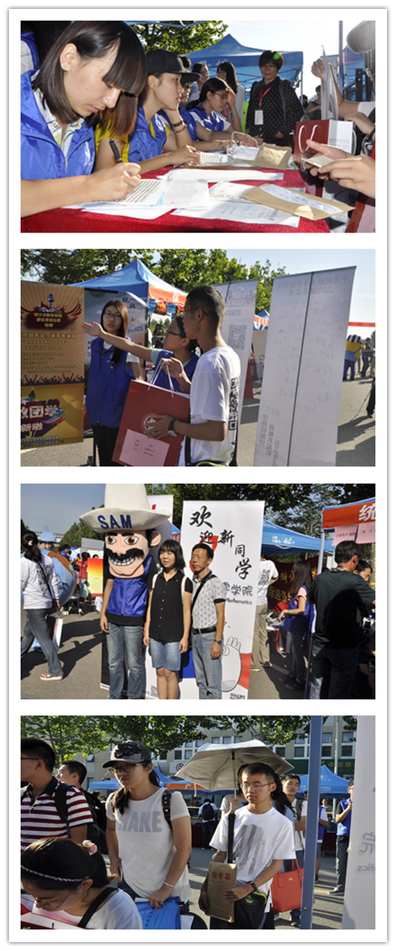 迎新当天,公司老师与志愿者们在公司报到点共同迎接新生的到来。公司团总支在龙马路上安排了志愿服务点。每一位新生都在志愿者的指引下完成了信息登记、资料发放、体检等报到流程。在新生们的资料包中,有公司精心为新生准备的作息表、课程表、院服以及活动安排表。在完成报到手续后,有不少新生来到公司设置的合影留念处,留下了他们在大公司园里的第一张照片。在报到现场,最别具一格的当属长着一脸大胡子的卡通人物——山姆大叔,它憨厚可掬的笑容使新生们感受到了太阳成集团tyc539严谨却又不失活泼的公司特色。