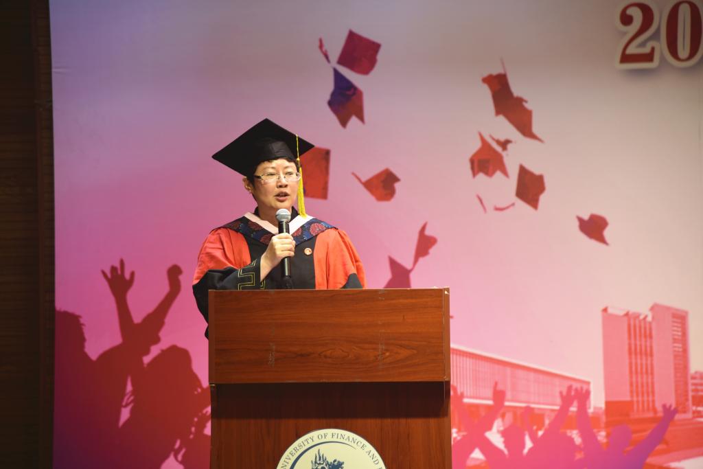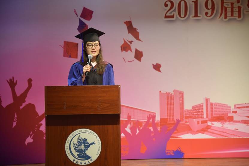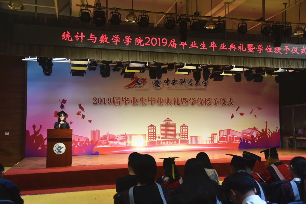 来自2015级应用统计专业的刘金钊同学和来自2016级数量经济学专业硕士研究生南孟哲同学分别作为本科生和研究生毕业生代表和大家一起回顾了在中财统数公司求学时光中的迷茫、汗水、喜悦和成长。“博观而约取,厚积薄发”,是“百尺竿头,更进一步”,是“一路黔行,未来可期”,我们收获的是“中财人龙马担乾坤的胆识与魄力”。他们表达了能够成为中财统数人的自豪和对母校的祝福与感激,以及统数学子为复兴中华奋斗的决心和信心。