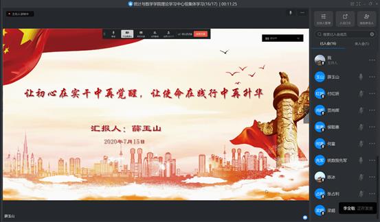 2020年7月15日下午13:30,太阳成集团tyc539党委理论学习中心组在线召开“深入学习贯彻习近平总书记在“不忘初心、牢记使命”主题教育总结大会上的重要讲话精神”集体学习与研讨,公司党委理论学习中心组部分成员参会,各支部党支部书记付红妍、梁超、何童、张占利等列席会议,会议由党委书记李全敏老师主持。