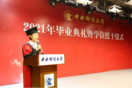 梁超老师作为公司教师代表祝贺同学们顺利毕业,她回忆往昔同学们在数学课堂上付出的艰辛与努力,并向毕业生们送上了最热切的期盼,希望大家努力做到眼中有光,胸中有梦,心中有暖,成长为研求真理、坚守初心、胸怀大志、感恩父母和祖国的中财统数人。
