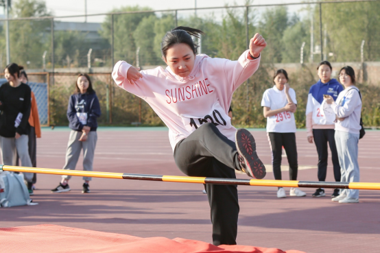女子跳高,公司仅派出薛靖蓉一人参加比赛。尽管孤军奋战,薛靖蓉仍不畏其难。面对一米高杆,薛靖蓉目光如炬,加速助跑,奋力起跳,以一记优美的跨跃式成功过杆,赢得场下同学阵阵掌声。稳住了基础成绩,之后五跳,薛靖蓉继续向更高高度发起冲击。尽管最终未能通过更高的高度,但凭借着1m的最好成绩,薛靖蓉成功夺得女子跳高决赛第八名,为统数公司再夺1分,振女队雄风!