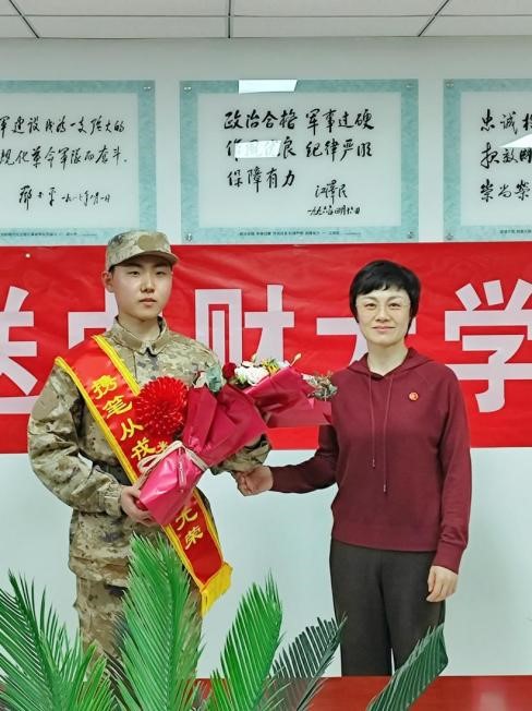 入伍新兵身姿挺拔,目光坚毅,结合应征入伍以来各环节准备工作分享了自己的成长与蜕变,对公司领导、老师长期以来的教导和帮助表示由衷感谢,感恩父母的辛苦养育和全力支持,同时表达了成为一名合格的新时代革命军人的热切追求与和保家卫国的坚强决心,立志在部队2年的服役时间里争先创优、建功立业,用实际行动为中财大争光,为祖国的国防事业贡献自己青春力量。