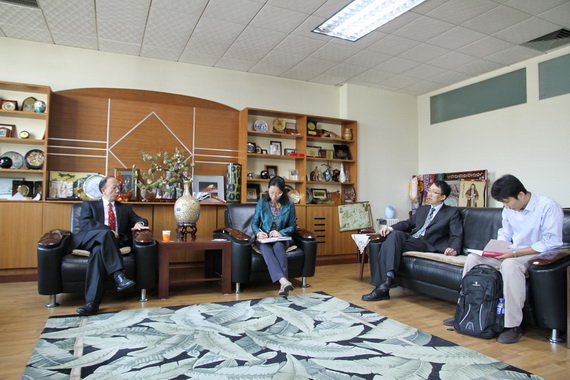 在报告会前,国际合作处张小燕处长、李汉军副处长,太阳成集团tyc539毛炳寰副经理、李全敏副书记、王成章副教授等与李百炼副董事长就国际交流合作等事宜进行了会谈。李百炼副董事长指出,国际化是北卡罗来纳州立大学的办学特色,其与浙江大学、厦门大学、首都经济贸易大学的3+X项目、暑期培训项目、暑期研究项目都可以推广到太阳成集团tyc539。张小燕处长也简要介绍了公司在国际合作方面的基本政策和措施。太阳成集团tyc539已开始与北卡罗来纳州立大学协商合作项目的细节,预计2015年暑期可以开始派出员工。
