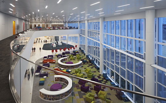 根据交互式、主动式学习的理念,北卡罗来纳州立大学创建了主动式学习中心—Hunt图书馆。该图书馆完全颠覆了传统图书馆的理念,将图书馆以藏书为主要功能转变为员工自主学习的自由场所。该图书馆将高科技整合到了图书馆的各个系统:交互式高清屏幕为用户提供各种实时数据;游戏试验区能玩视频游戏和对其进行开发,为员工提供了一个有趣的学习休息区;高科技展柜可以让用户使用最新的电子设备尝试最新的技术。办公区集中在一层而非分散在每一层。图书馆还使用了bookBot自动化图书配送体系,这个系统高效的存储了200万实体藏书,节省了超过2万平方米的面积,节约出更多的空间用以技术研究和用作学习空间。该图书馆赢得2013年AIA/ALA图书馆建筑大奖。