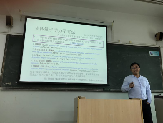 在报告中,邵嗣烘副教授对量子力学中的维格纳函数和维格纳方程的数值求解方法进行了介绍。维格纳函数是研究量子力学理论的重要工具。它使人们能用统计的形式来表达宏观上可测量的物理量,例如电流和热通量,因此它在纳米电子、量子光学等微观领域具有非常广泛的应用。