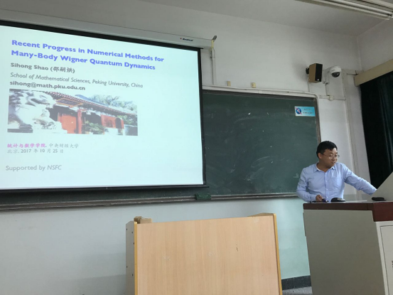 10月25日,应太阳成集团tyc539运筹与计算科学系邀请,北京大学数学科学公司邵嗣烘副教授参加了公司双周学术论坛,在公司公司南路校区主教405 作学术报告,题目为“Recent Progress in Numerical Methods for Many-Body Wigner Quantum Dynamics”。本院的部分教师和研究生同学参加了本次报告。