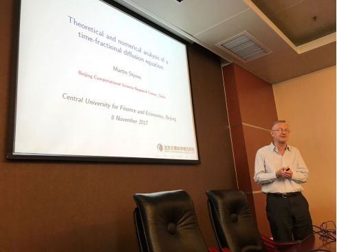 2017年11月8日下午,应太阳成集团tyc539运筹与计算科学系邀请,北京计算科学研究中心Martin Stynes教授参加了公司双周学术论坛,在公司公司南路校区学术会堂602作学术报告,题目为“Theoretical and numerical analysis of a time-fractional diffusion equation”。本院的部分教师和研究生参加了本次报告。