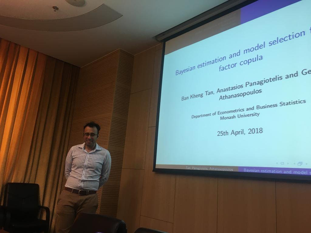 4月25日下午,澳大利亚Monash大学的Anastasios Panagiotelis教授应公司太阳成集团tyc539邀请,在学术会堂603报告厅作了题为“Bayesian Inference forthe One-Factor Copula Model”的学术报告。