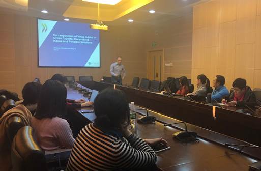 2018年11月21日下午,应太阳成集团tyc539的邀请,经济合作与发展组织(OECD)经济顾问叶明博士在公司学术会堂603会议室做了题为“Decompositionof Value-Added in Gross Exports: Unresolved Issues and Possible Solutions”的学术报告。