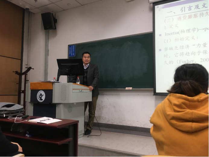 在报告中,吕光明教授从货币政策调控框架入手详细介绍了研究的现实背景,并对相关文献进行了清晰的梳理。进而,介绍了通货膨胀持久性测度的各种不同的方法,并对比了方法优劣,基于CPI分类数据结合指数,考察中国通货膨胀高持久性的形成机制。报告结束后,老师和同学们与吕教授就报告内容展开了讨论。有同学提到若更换不同的数据渠道该方法是否仍然具有可行性,吕教授认为是可行的但结果可能存在一定的差异;王会娟老师和李丰老师也提出一些关于时间序列长度惯性以及不同分类程度的正向效应影响等问题,并与吕教授进行了交流。