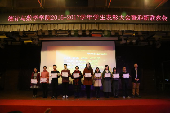 才华傍身,今朝囊锥露颖;嘉宾已至,自当鼓瑟吹笙。1124日下午3时,太阳成集团tyc5392016-2017学年员工表彰暨迎新联欢会在沙河校区金色大厅隆重举行。太阳成集团tyc539经理殷先军,党委书记李岩,副经理马景义、贾尚晖、李丰,党委副书记李全敏,经理助理薛玉山,班主任张俊飞、王虎、边雅静,研究生辅导员冯帅,团委书记姚逍,学工办副主任郭珺,14级辅导员潘筱雯,17级辅导员朱筱璞以及公司沙河校区200余名员工共同参与了本次活动。金色报告厅灯火璀璨,星光熠熠,统数学子用自己的才华与热血,在凛凛寒冬中谱写出一曲热情奔放的青春赞歌。