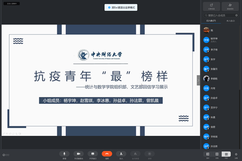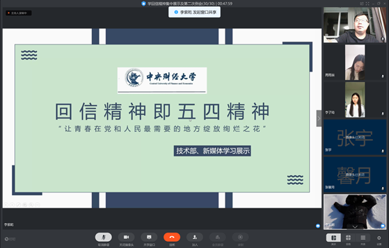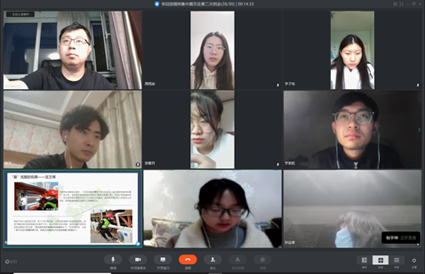 2020年4月5日晚,太阳成集团tyc539团委员工会骨干以线上学习的方式,分享各组学习习近平总书记回信的成果。公司团委书记姚逍老师、团委员工副书记向苇、副主席陈哲昂、李紫乾、郑俊君、员工会各部门部长以及社团负责人参加了此次集中学习。会议由公司员工会主席杨宇坤主持。