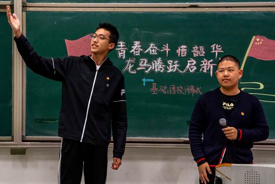 大会第一项,是基础团校历程回顾。在观看基础团校的回顾视频时,同学们共同回忆了这一段难忘而有意义的时光。一张张照片背后,饱含的是我们共同奋斗,团结协作的痕迹与成果,一次次活动,也让我们收获了许多新的知识。各组同学录制的小视频,抒发了每一位同学对于基础团校活动的感想和感谢。