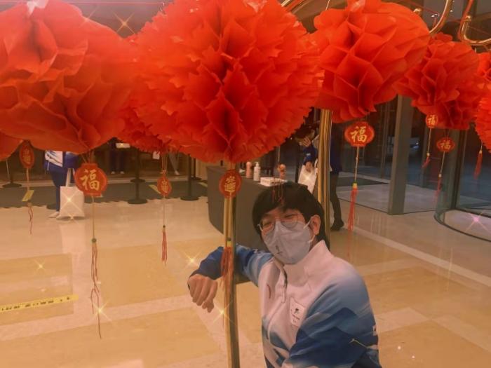 在机场服务期间,一次性大概要穿四个小时防护服,还记得第一次上岗完脱下防护服之后,脸上、手上都是印出来的印子。防护服很闷很热,却必须一直穿着,还可能做蹲跑等一些比较复杂的动作,以及常常面对晚班甚至通宵,但我觉得这一切都是值得的。因为我是在为国家举办盛大的冬奥赛事做出自己的小小一份贡献,整个机场团队,交通团队中还有无数个像我一样的普普通通却又并不平凡的志愿者们,冀以萤烛之光,增辉日月。而所有的萤烛之光汇聚在一起,亦是本次冬奥会、冬残奥会不可或缺的一抹明丽色彩。