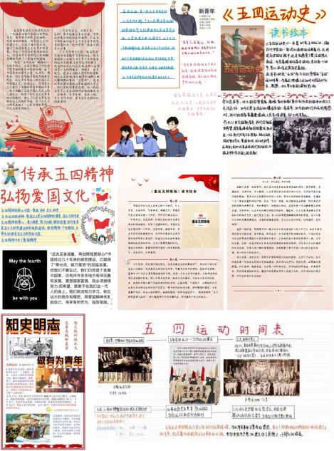 内有所获更应外化于行,团员们积极将读书感想制作成读书绘本,用个性化的创作展示学习成果,将心中的景仰敬佩之情与青春誓言落于笔纸上,对话青年前辈,表达着自己真挚炽热的爱国热情。通过观看插图中泛黄的老照片和浓墨书就的口号横幅,团员们再次走近百年前那群神采奕奕、满腔热血的青年,正是他们鲜活的青春力量,为当时前途晦暗的中国拨开乌云,把希望的光芒带到祖国大地。这场无声的“世纪交流”,让五四精神更加深刻地印入每一个团员心中。