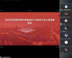 班委刘畅健同学组织带领团员们集体学习习近平总书记在庆祝中国共产主义青年团成立100 周年大会上的重要讲话精神。从习近平总书记的殷切希望中感悟共青团砥砺前行的力量。