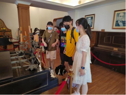 7月30日,团队成员第一次登岛实践参观了鼓浪屿当地具有地方特色的博物馆,并就后疫情时代的鼓浪屿商业问题同市场监督管理所的工作人员们进行了交流。细数参观过的博物馆,最能体现鼓浪屿历史底蕴和自然景观相结合的特点的就是菽庄花园景区。如果说建筑是鼓浪屿的表,那么菽庄花园一定称得上是鼓浪屿的门面,建成于1913年的它位于岛的南部。面向大海、背倚日光岩的巧妙天然地形布局之下,既有江南庭院的精巧雅致,又兼具海鸥展翅飞翔的雄浑壮观,一动一静,实现园中有海,海中有园的美丽场景。但不止于此,如果说建筑是鼓浪屿的表,那么音乐就是鼓浪屿的灵魂。菽庄花园景区的山丘上坐落着历史悠久的鼓浪屿钢琴博物馆,团队成员们欣赏着跨越几个世纪来到眼前的古老钢琴,听着钢琴博物馆APP上属于他们的悠扬琴声,做着上个世纪琴岛风华的梦。