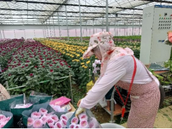 7月31日,五朵金花团队来到了祥云县进行实地的调研采访。沙龙镇位于祥云县西部偏中,是全县唯一的城郊乡镇,这里地势平坦、阳光充足、海拔在2000m左右,利于花卉种植,唯一制约就是缺水。政府在考虑各方面因素并承诺解决水源问题后,与昆明虹之华园艺有限公司合作在祥云县沙龙镇落地大理天华生物农业有限公司,建立申洱花卉种植基地。在来到申洱花卉种植基地后,我们了解到目前该基地主要生产菊花,包括切花和种苗;并与多个高校进行校企合作提供技术支持,同时成立自己的研究团队,进行种苗的培育,实现科学种植;该基地采用订单式销售模式,先预订后生产;并会雇佣当地劳务用工,提供当地更多的就业机会。