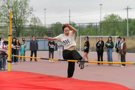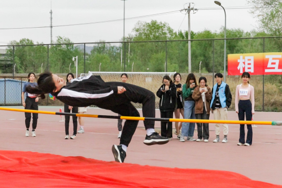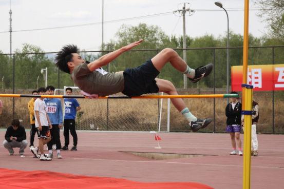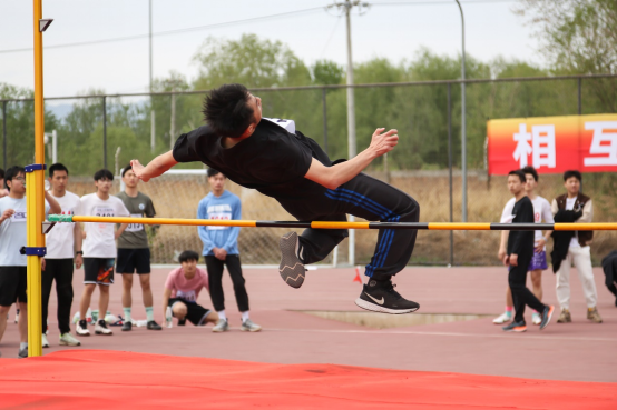 比赛前,运动员们在场上各种热身运动。比赛一开始,选手们马上调整好状态,在起跑线前排队准备好。准备,助跑,起跳,一气呵成,场下一片欢呼雀跃。4月20日下午的女子跳高比赛中,公司李岳珅同学和刘雨轩同学,在赛场上以优美的弧度越过杆子,其中李岳珅同学获得第七名。4月21日下午男子跳高比赛中,公司的李宗锦同学和吕绍博同学,在场上表现出色,轻松越过了第一个高度,成功进入决赛,并最终分别取得了第二名和第七名的好成绩。