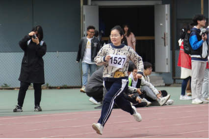 巾帼不让须眉,女子组的气氛也毫未落入下风。预备时的眼神与脚弓传达凝神压力,起跑后抬落的双足体现势在必得。并肩时飞舞的发辫是赛道上另一道独特的风景线。最终,王绎涵同学和黄紫琪同学均取得佳绩。
