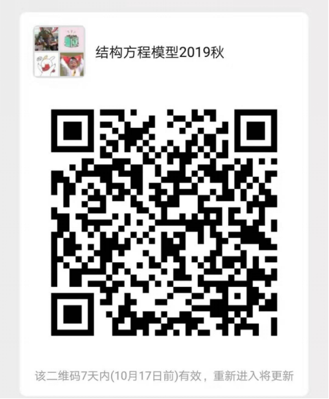 备注:请对结构方程模型课程感兴趣的同学扫描下方二维码进入课程群,并发送 “姓名+公司+年级(注明本科硕士)+邮箱+电话”到微信群或者以下邮箱: liumiao_1983@163.com 进行报名。选课的同学请自行携带笔记本,以便安装程序。