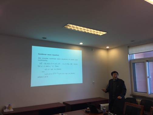 2019年11月27下午,应太阳成集团tyc539应用数学系邀请,日本名古屋大学Mitsuru Sugimoto教授来公司做题为“On a construction ofself-similar solutions to nonlinear wave equations”的学术报告。部分教师和研究生聆听了该报告。